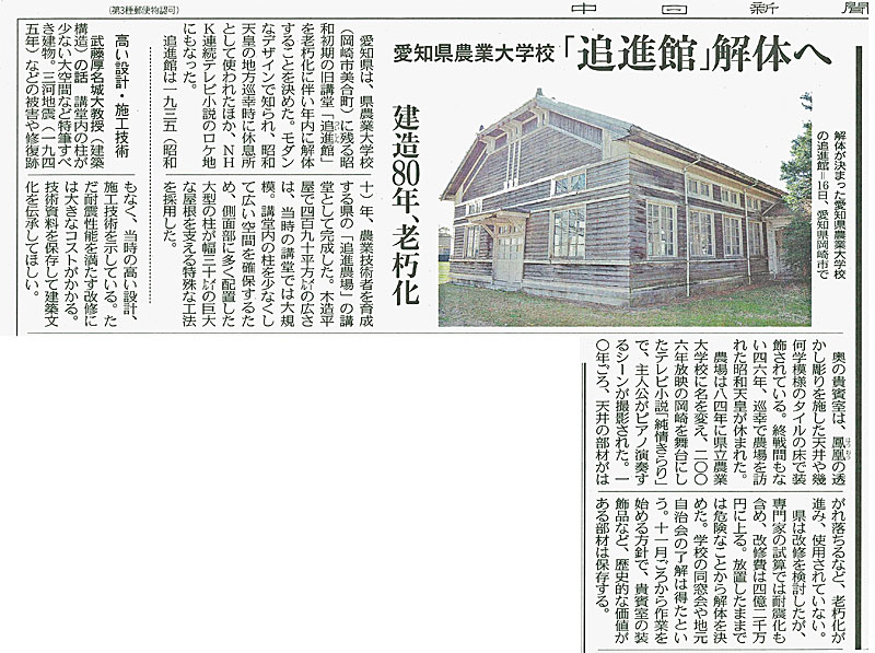 以前、この日記でもご紹介したことのある愛知県農業大学校の『追進館』。