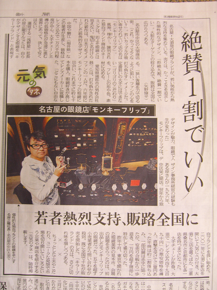 昨日の中日新聞の「元気の種」に私の友人が掲載された。名古屋大須のモンキーフィリップのチェンロン(彼のニックネーム)。