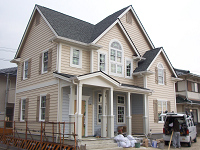⇒写真は施工中の様子です。外壁の塗装施工中です。
