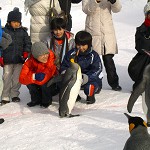 入園直後、ペンギンのお散歩タイムのアナウンス。ディズニーのパレードの様に、行進する沿道に人々の花道ができた。前方の人々の歓声があがり、間もなくしてペンギン達が歩いてきた。あるペンギンは芸でも教えたかという程、愛想良く観客に近づきカメラにポーズを決める。凄技のペンギンである。
