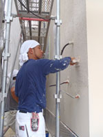 猛暑の中の塗り壁は、乾きも早く、厳しい条件の中、左官職人さんは素晴らしいチームワークで丁寧且つ手際よく仕事をしてくれていました。当初、私がイメージしていた通りに仕上がりとなりそうです。安城建築らしい塗り壁の家に大変誇らしく思いました。
