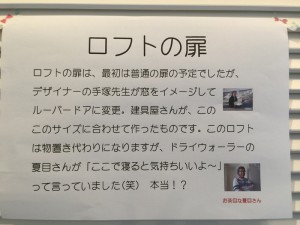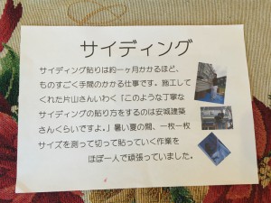見学会には、お施主様自らが施工中の現場で職人さん達の写真を撮影して頂き、それをボップの様に壁に張って頂きました。職人さん達もさぞかし嬉しかったことでしょう。