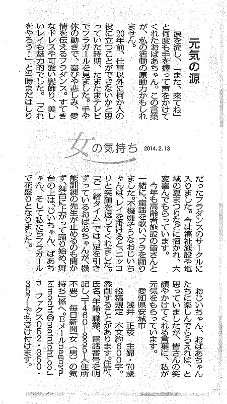 今回人伝えで、この新聞記事のことを知り、『へぇ~、フラダンスをしていることは知ってたけど、フラを通じてこの様な活動をしていたんだ~』という事を初めて知りました。