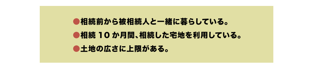 ご両親からの相続が発生した時、一定の要件を満たすと、被相続人の自宅敷地の相続税評価額を抑えて相続税を軽減できる「小規模宅地等の特例」が適用されます。