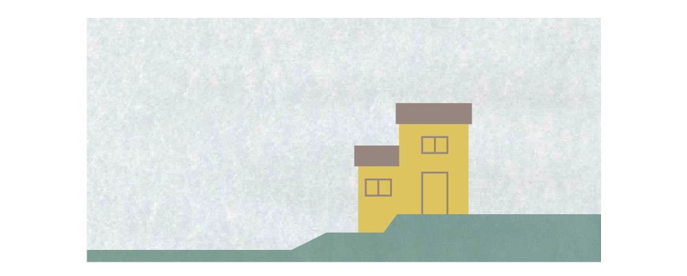 ひな壇状に造成される以前の、高低差のある自然のままの土地。平らに造成して家を建てるのが一般的ですが、がけ崩れのおそれのない地盤であれば、高低差を活かして、眺めがよく、採光・通風に優れた家を建てることができます。