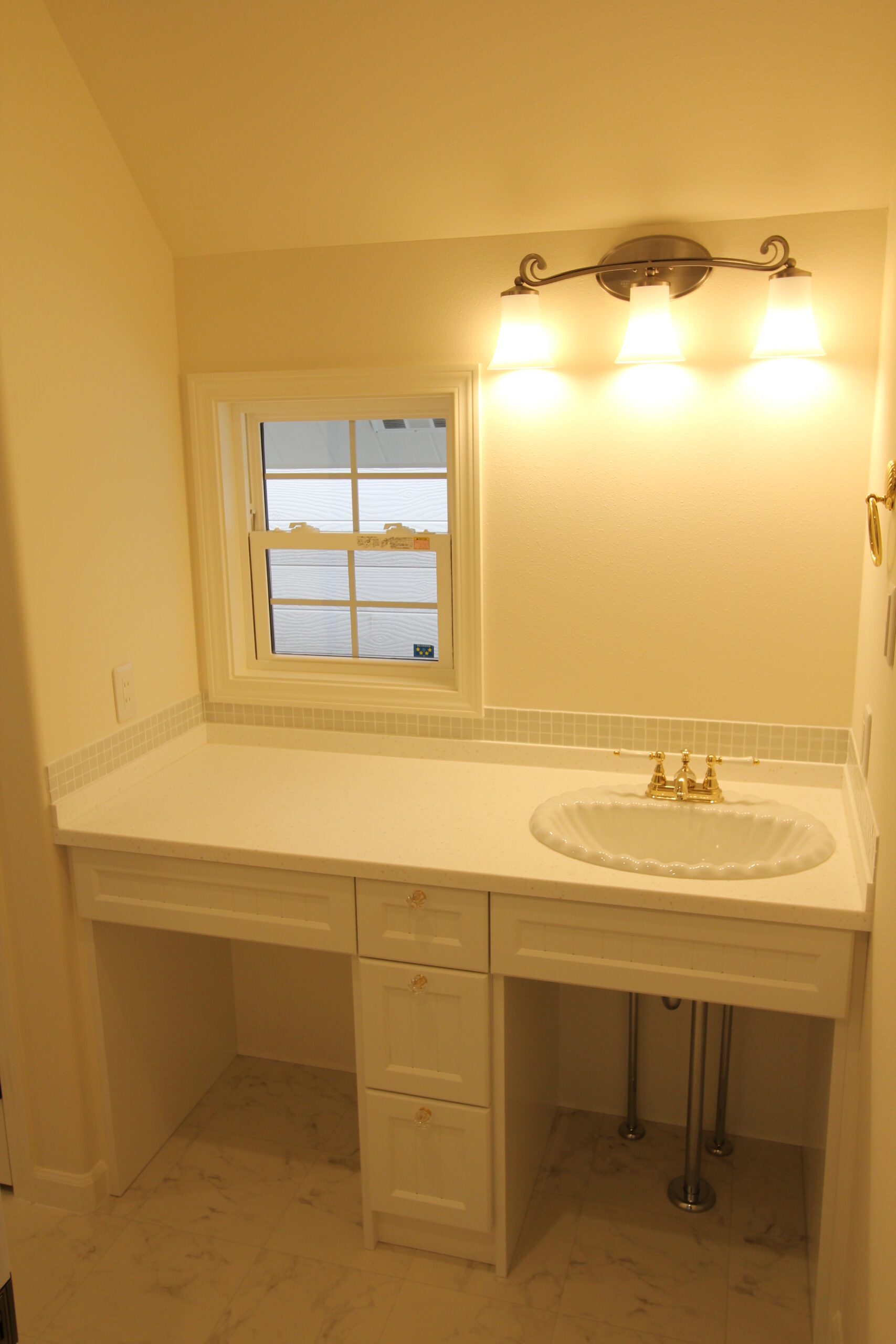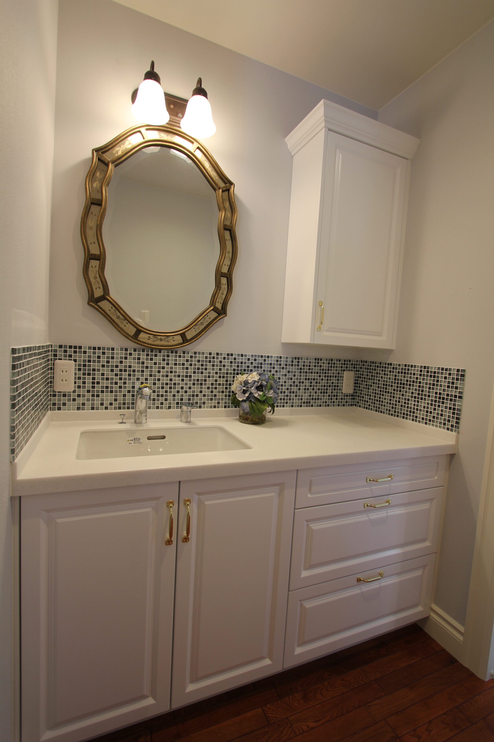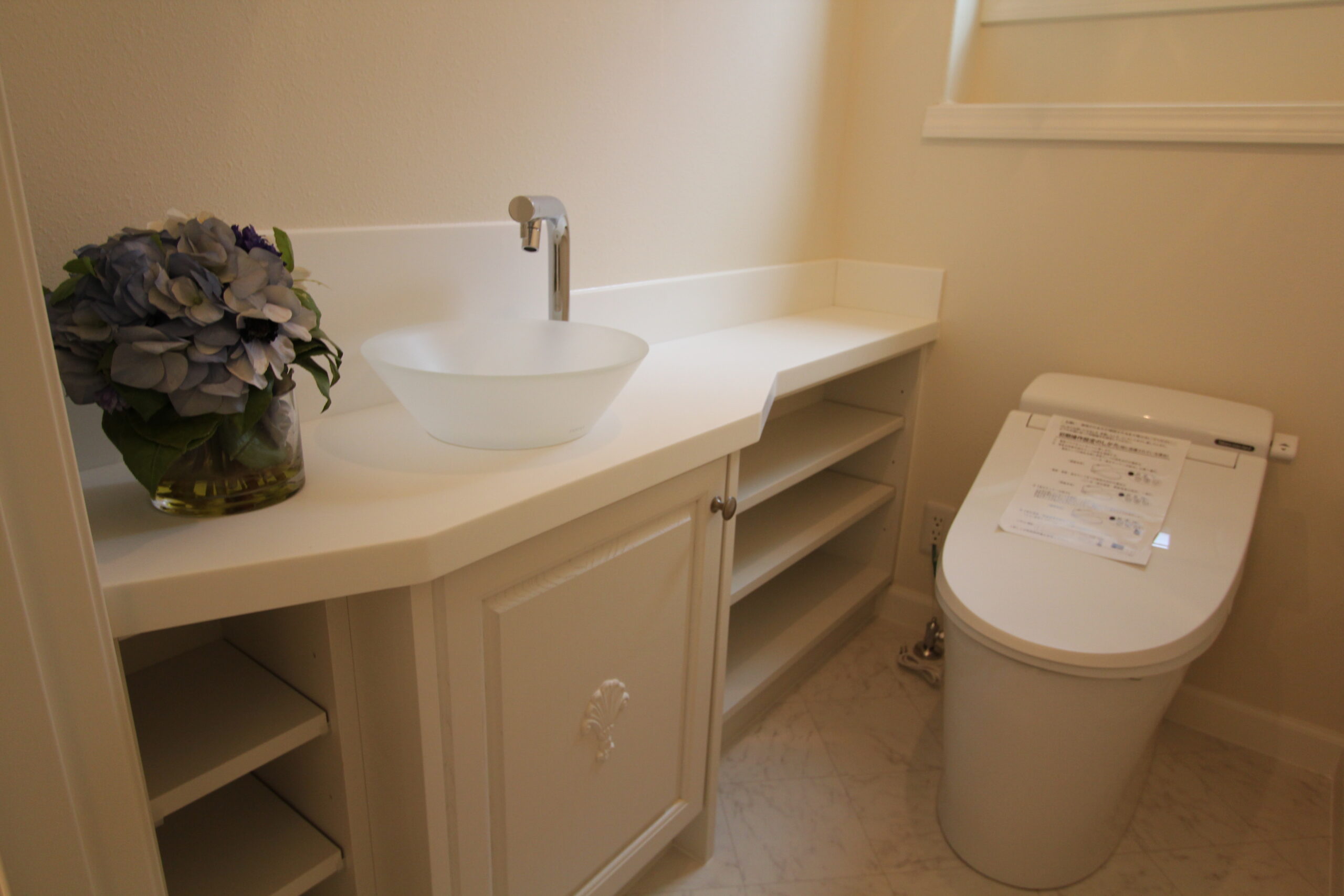さらにおしゃれな鏡や照明器具をつけると、見た目は随分と違ってきます。 機能以上におしゃれさを優先したい方には、輸入洗面化粧台、または洗面器や水栓金具を輸入品で選び、カウンターを造作仕上げする洗面台で対応することもできます。美しさのある洗面化粧台は、一日のはじまりから気持ちを変えてくれることでしょう。