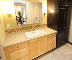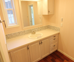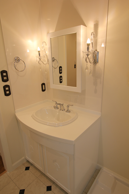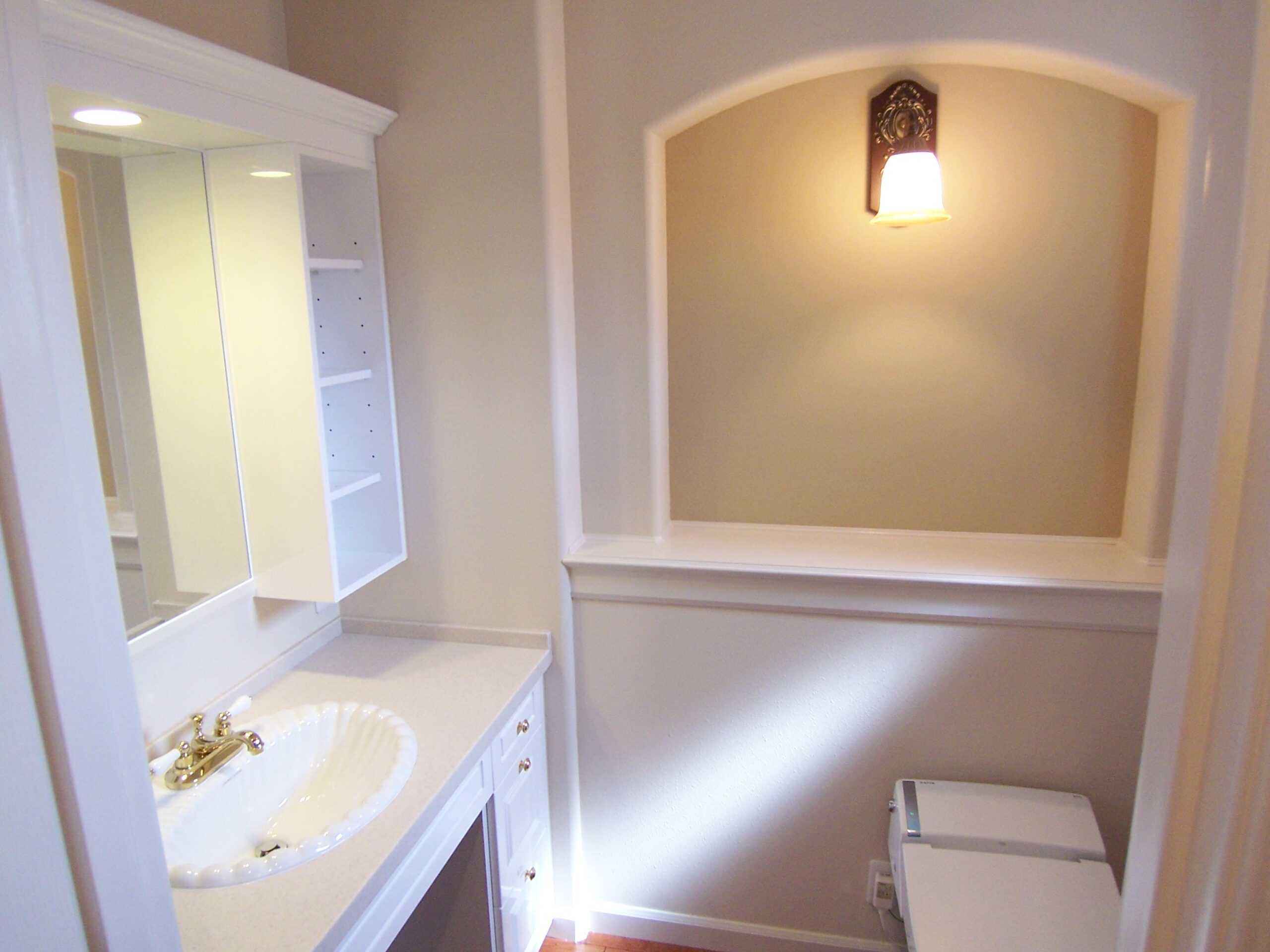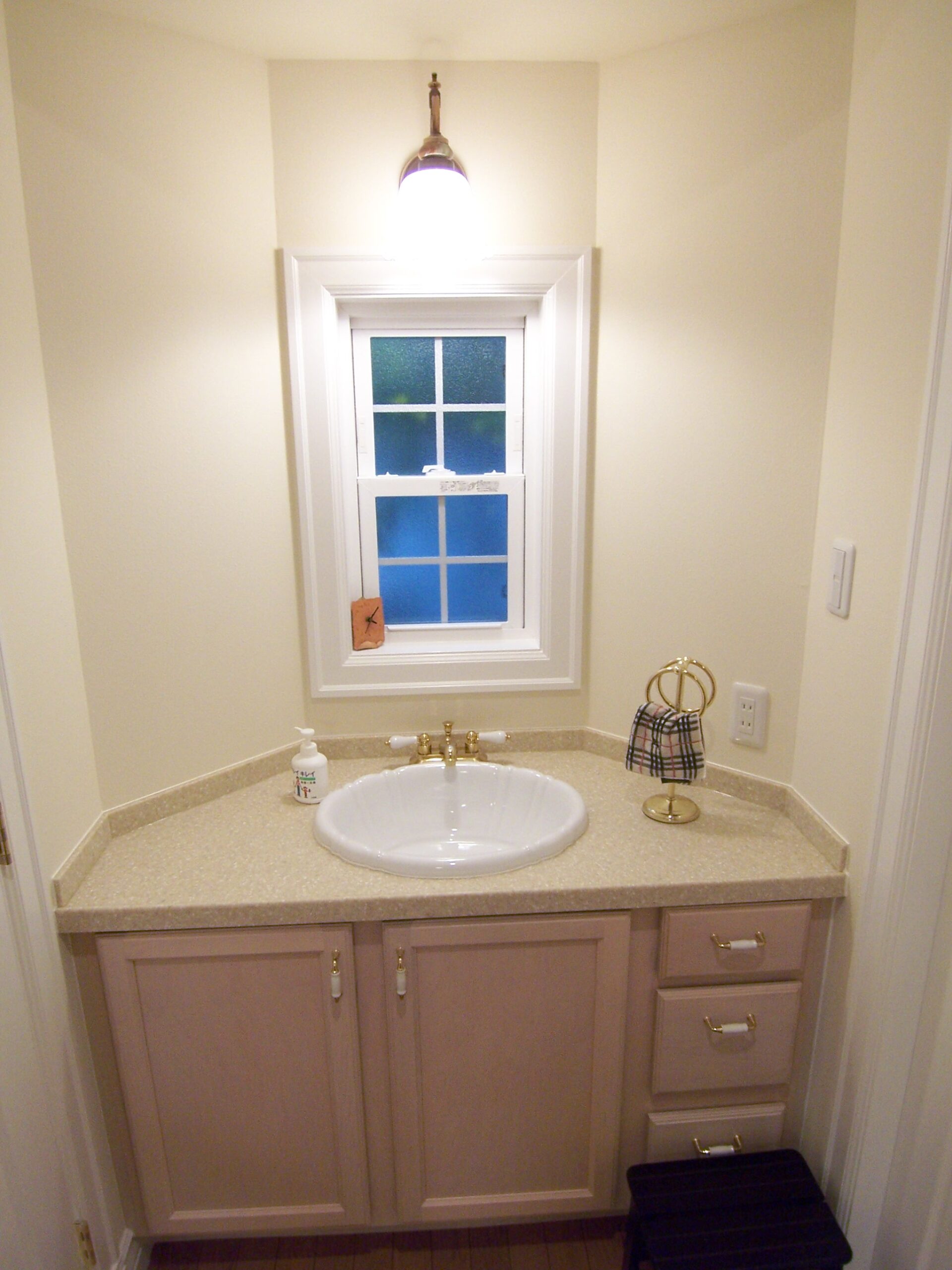 さらにおしゃれな鏡や照明器具をつけると、見た目は随分と違ってきます。 機能以上におしゃれさを優先したい方には、輸入洗面化粧台、または洗面器や水栓金具を輸入品で選び、カウンターを造作仕上げする洗面台で対応することもできます。美しさのある洗面化粧台は、一日のはじまりから気持ちを変えてくれることでしょう。