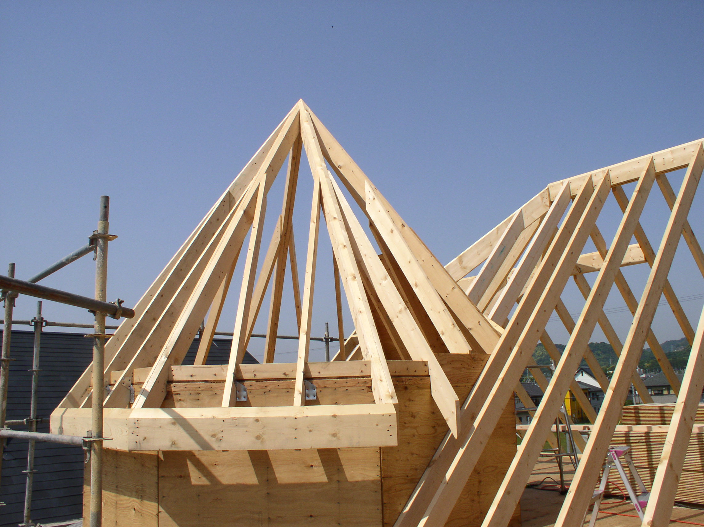 そのため、北米式ツーバイフォーを熟知し、インチフィートのメジャーやアメリカ・カナダで使用されている関数電卓(コンストラクションコンピュータ)を自在に使いこなせるベテランの大工が必要となります。