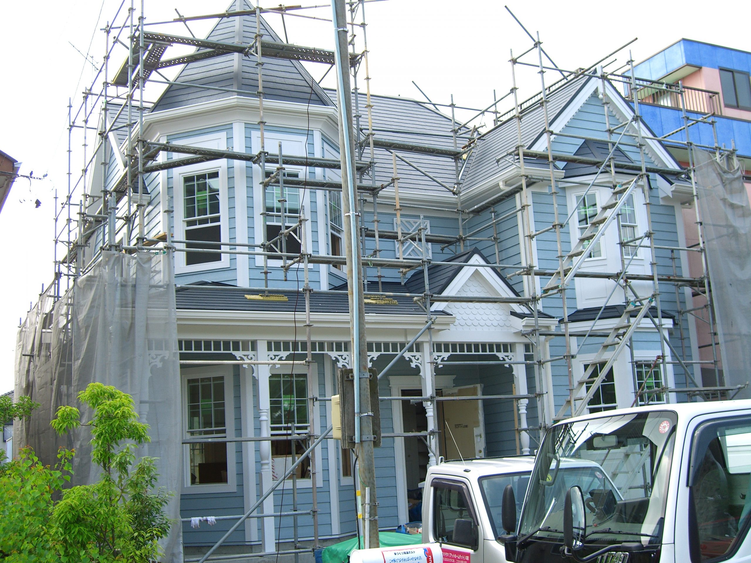 輸入思想住宅は外装部分に装飾を伴うことが多く、現場監督は装飾部分からの雨漏れ対策に充分配慮する必要があります。