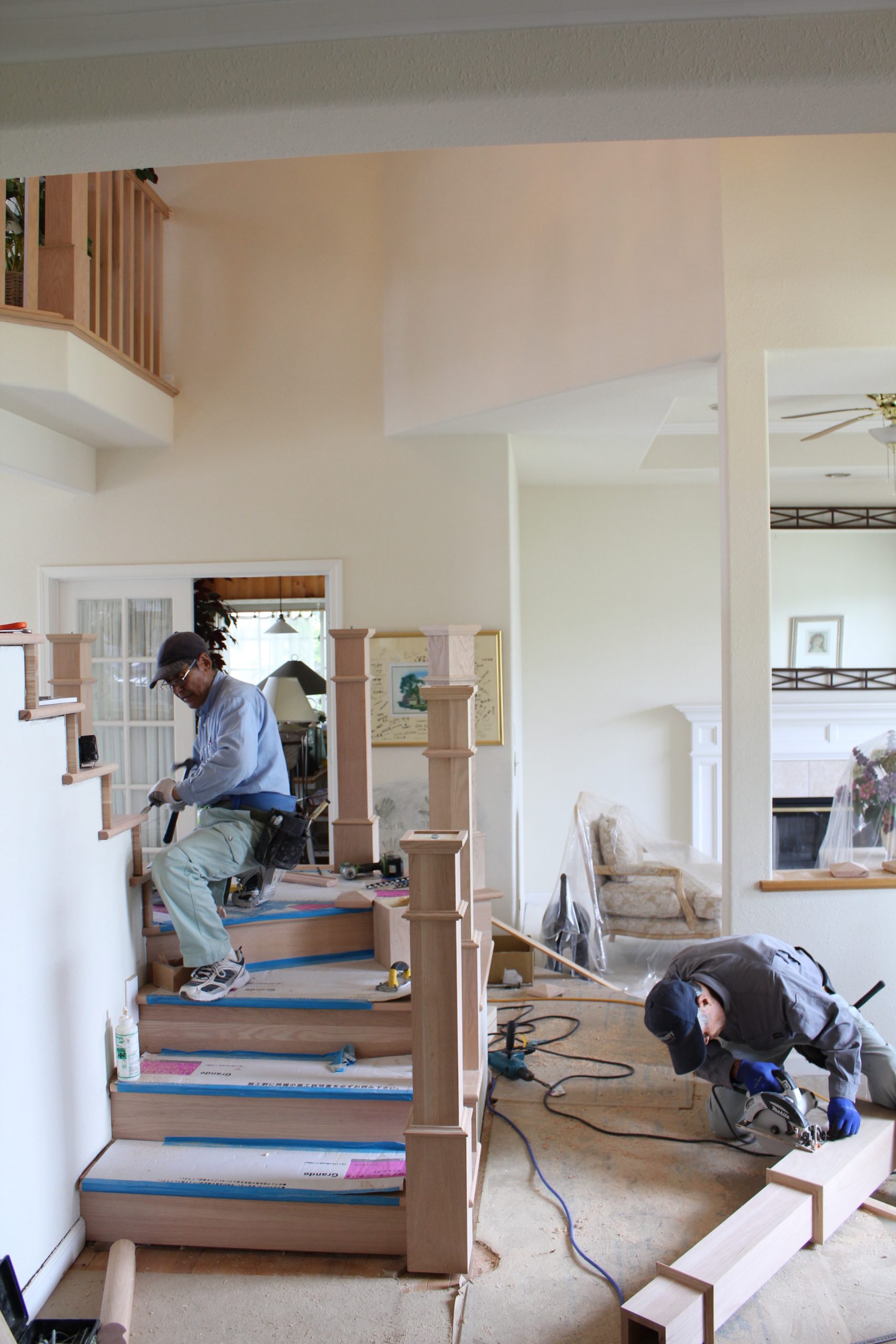 一般的に、アールの階段は工場であらかじめ組み立てたものを一旦解体し、現場にて再度組み立てます。