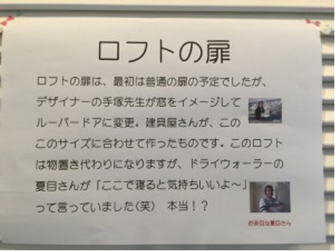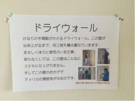 見学会には、お施主様自らが施工中の現場で職人さん達の写真を撮影して頂き、それをボップの様に壁に張って頂きました。職人さん達もさぞかし嬉しかったことでしょう。