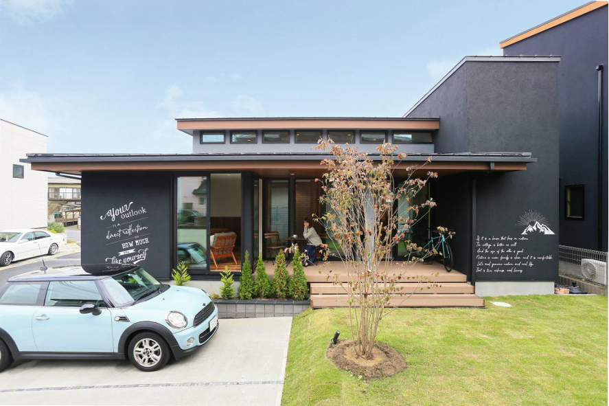 西尾市にて4月末リゾートコテージ(大型ビルトインガレージ付)の様な平屋が完成します。外壁は黒の塗り壁、まるでスター○ックスのお店の様で超お洒落です。飽きの来ないクラシックをベースにしつつも新しさのスパイス、モダンをブレンドしたデザインとなっております。