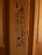 現在建築中の現場にて、お施主さんご家族が書かれたと思う柱の落書きを見つけた。