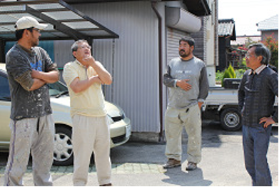 幸田町で施工中のI様とご紹介者で安建OBのH様と職人のひとコマ