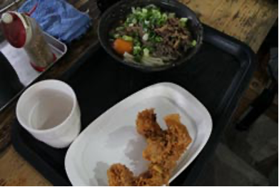 元祖さぬきうどん。ビニールハウスのお店で肉うどんを食べました。