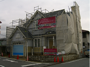 現在外装工事が完了し、間もなく塗装工事に入る。豊田市のY様邸。