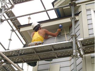 電ノコ(電動のこぎり)でカットしたパーツを取り付ける作業をしていた。通常の職人がおこなう工程と異なる彼の不思議な動きを観て私は足場に駆け上がった。