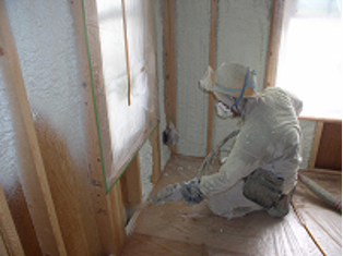⇒隠れてしまう部分こそ暮らし始めてからの違いが明確に解ります。職人曰く、「このウレタン断熱材も一度に発泡吹き付けせず、手間と時間は掛かかるが、数層に分けて施工すると同じ材料でも品質が上がり性能も上がる」とウレタンまみれの顔で話してくれた。