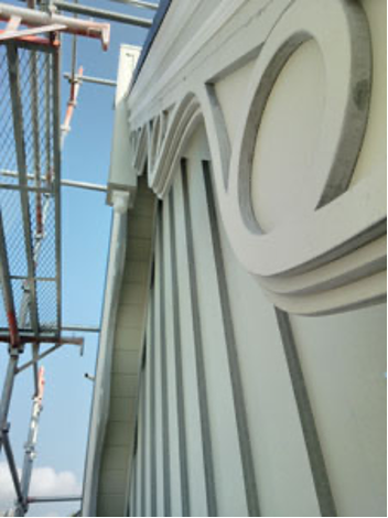 細部の納まりを見たくて思わず足場に登りました。近くで見なければ解らない細部まで造りまれ、仕上げに丁重に手掛けでのサンディングペーパー掛けまでしてありました。職人の技の凄さと情熱に圧巻。