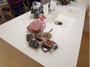 ⇒見学会当日はバレンタインデー。お客様から頂いたチョコレートと手造りお菓子、美味しく頂きました。本当にお心遣いありがとうございます。