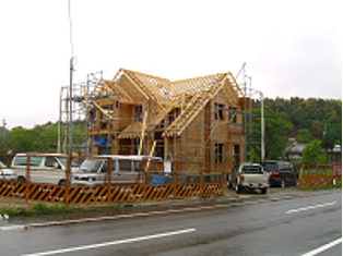 この現場はのどかな岡崎市の山間あり、近くからうぐいすの鳴き声も聞こえ屋根に上ると更に山々の眺めがいい。大工はそれどころではないが・・・。