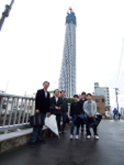 同行した建築家の手塚氏は幼い頃、建築中の東京タワーを背景にお父さんに撮影してもらったスナップ写真が残っているらしい。東京タワー建設から約半世紀後、建設中のスカイツリーの前に立つのも不思議な感覚だったと思う。