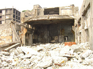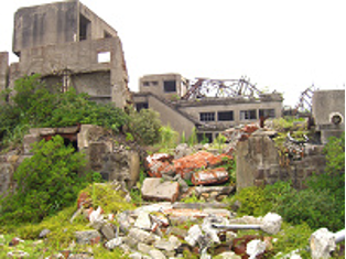 この島は昭和7年~49年の間、炭鉱で栄えた周囲1.2キロ程度の小さな人工島で、最大で5200人程が生活し、当時人口密度世界一を誇った島である。しかし、石油へのエネルギー転換の為、閉山となり現在に至るまで無人の廃墟の島となり、現在世界遺産にする活動が行われている島である。