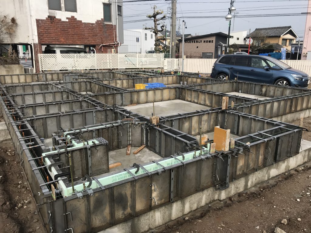 2/20(土)から基礎工事が始まり着々と工事が進み、今日は立上り打設前の確認をしました。