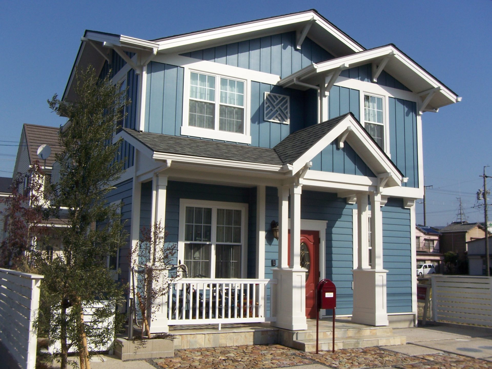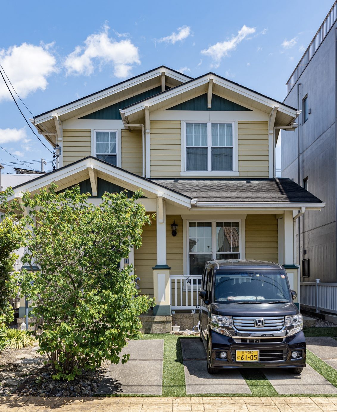建材の素朴な質感、庇の先端に化粧端を強調した広い張り出し、パーゴラや格子屋根にその特徴が表れています。