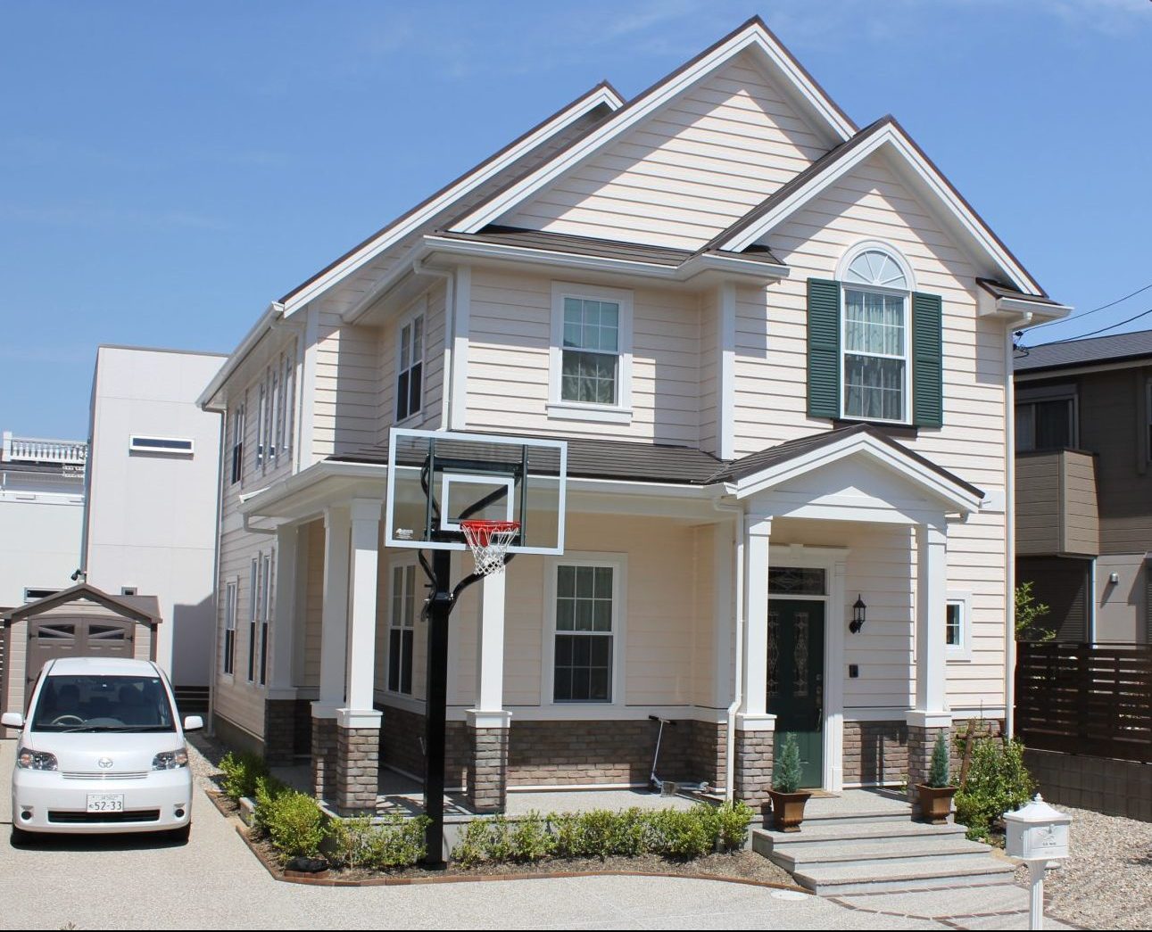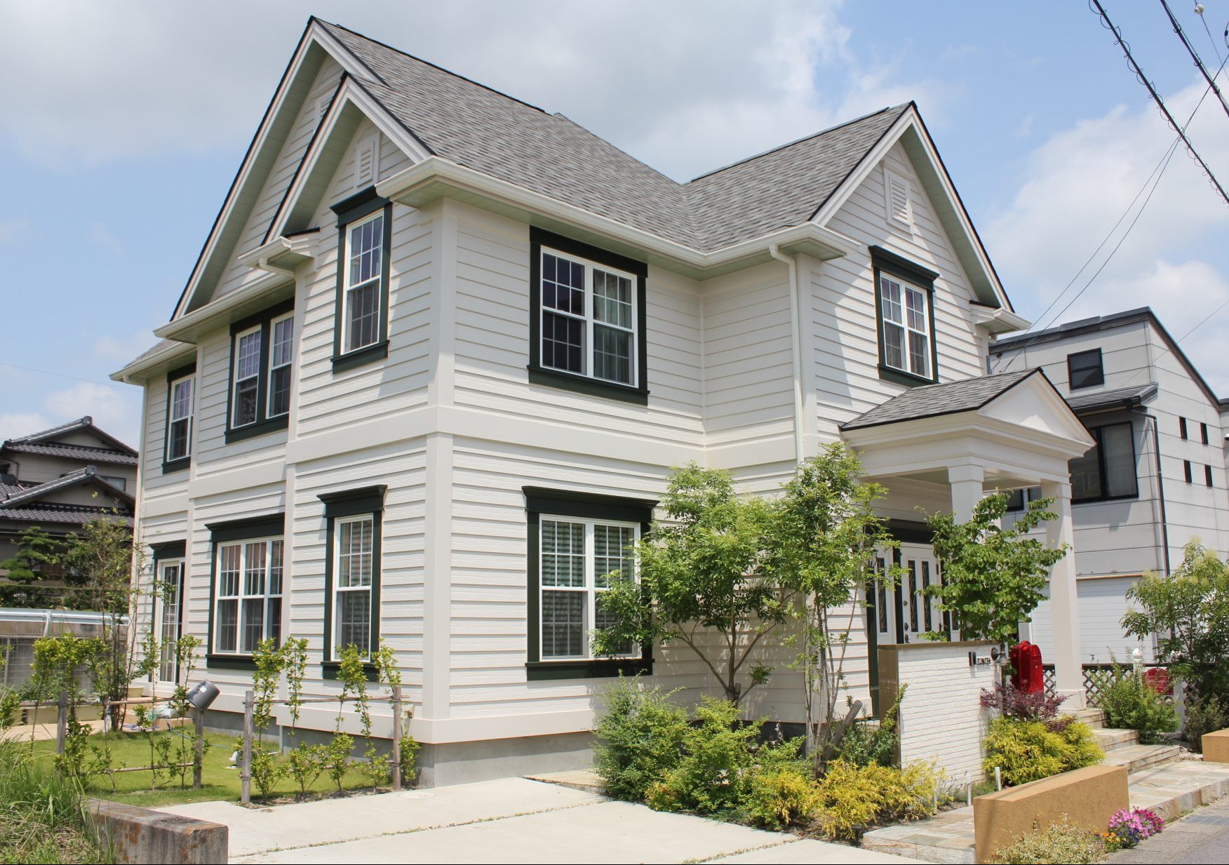 これに対してトラディショナルスタイルは、妻部分にゲーブルを、窓の両サイドにルーバーシャッターを取り付けるなど、デザイン性を高めるためのポイントとして装飾を施します。
