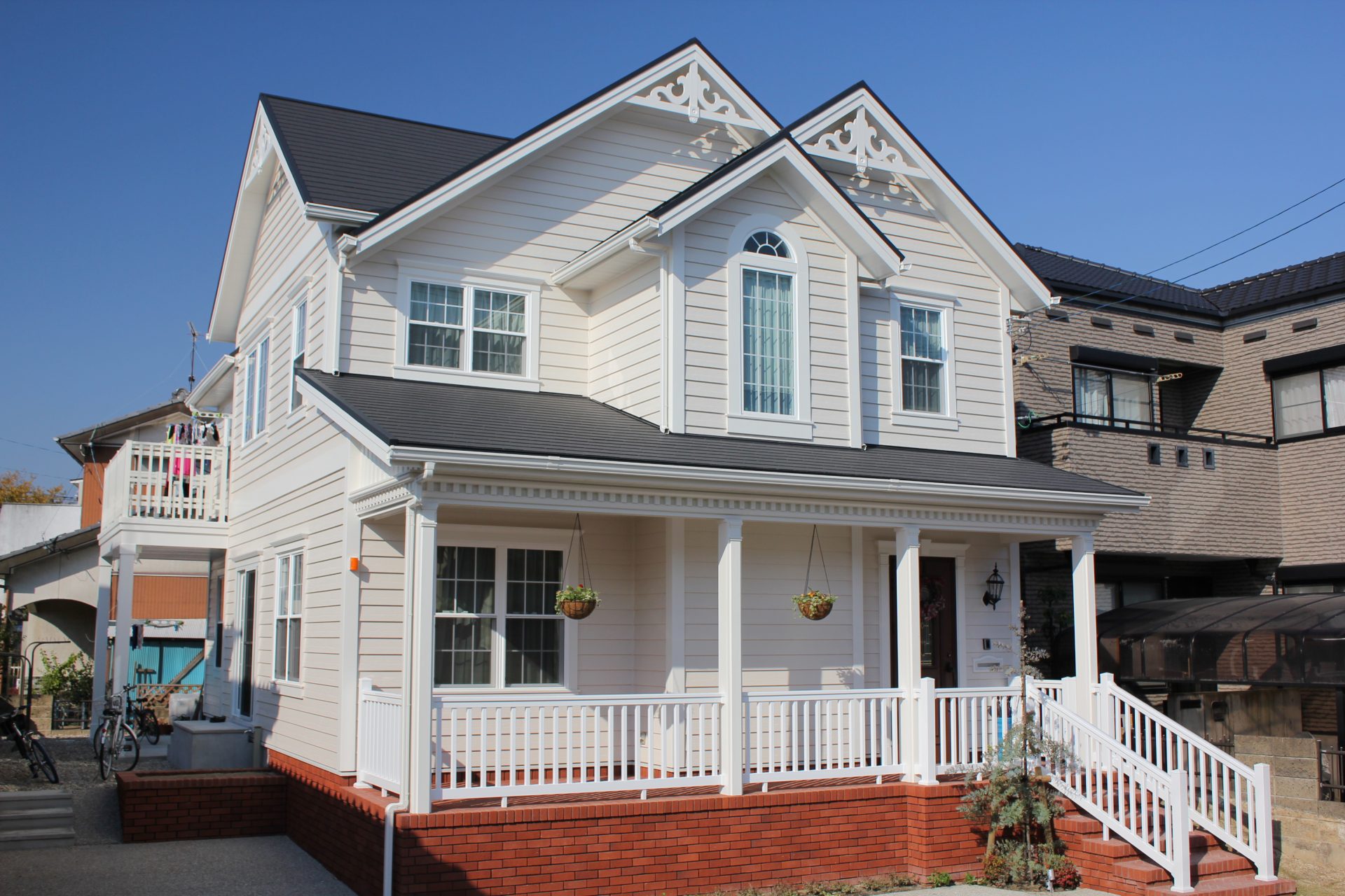 たとえばビクトリアンスタイルやクイーン・アンスタイルは、建物のフォルムに変化があり、窓まわりや建物まわり、つま部分にデザイン性に富んだブラケット、ゲーブルなどの装飾を多用することで華やかさを表現しています。
