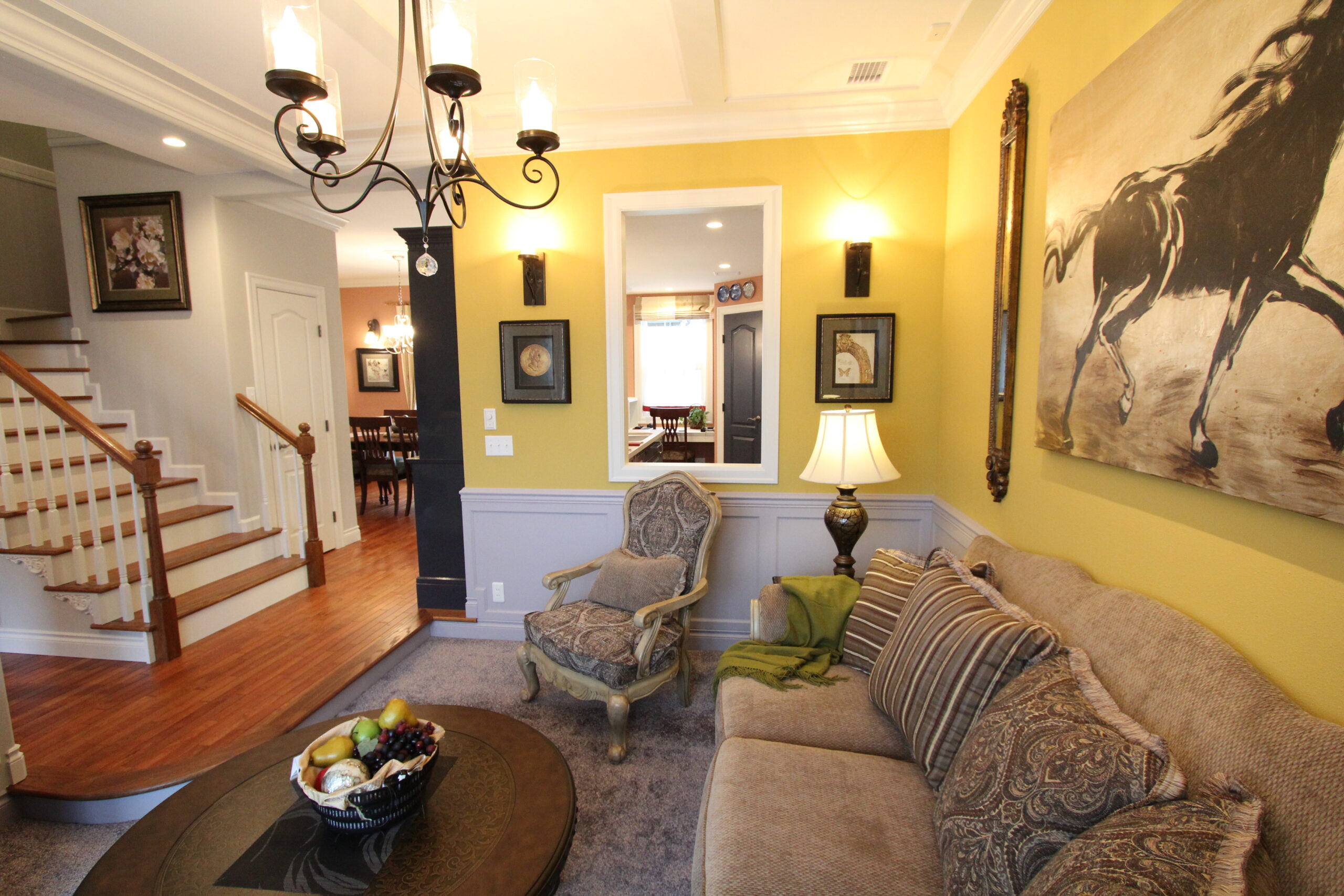 老若男女の道行く人が足を止め見上げていくほど魅力的な家です。玄関に入ると、オープンだが見えそうで見えない間取りになっており、リビングでのくつろぎを邪魔しません。リビングの段差・ホールの棚はアールに加工されており優しい雰囲気になっています。
