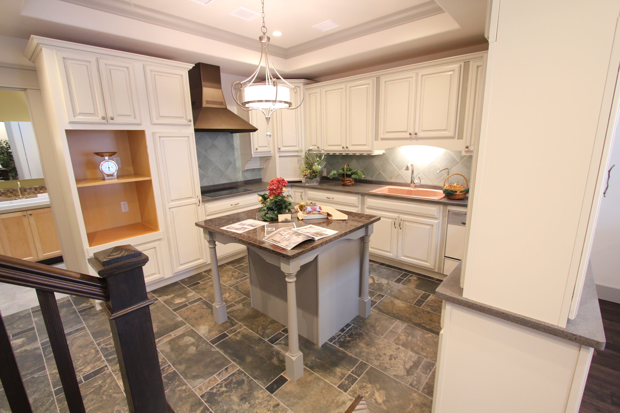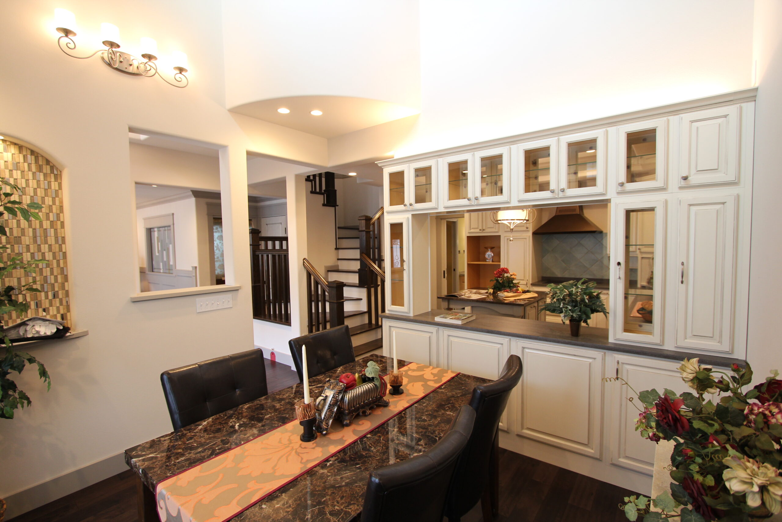 弊社の取引先である輸入キッチン屋さんの方のショールームを併設した素敵な家です。米国のインテリアの本に出て来るような、迫力のあるオーダーキッチン。中央にはアイランドを配置。見て美しいキッチンは、料理の質を変えてくれそうです。こんな素敵なキッチン、誰もが憧れることでしょう。